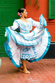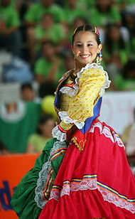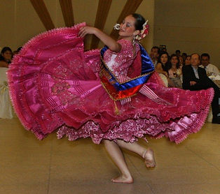 Un elemento fundamental para el baile es el traje de la dama, compuesto por una o más enaguas o fustanes sobre las cuales se lleva una falda de raso ricamente adornada y con amplio vuelo, cuyo movimiento resulta especialmente vistoso durante el baile.